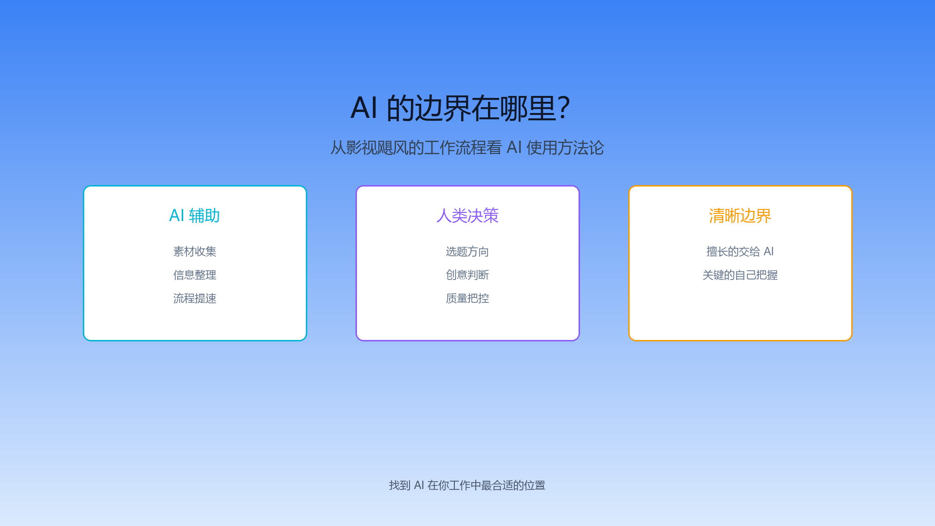 你会发现,他们每一个环节都有一个共同点:AI 始终是辅助,人始终在关键节点上做判断。