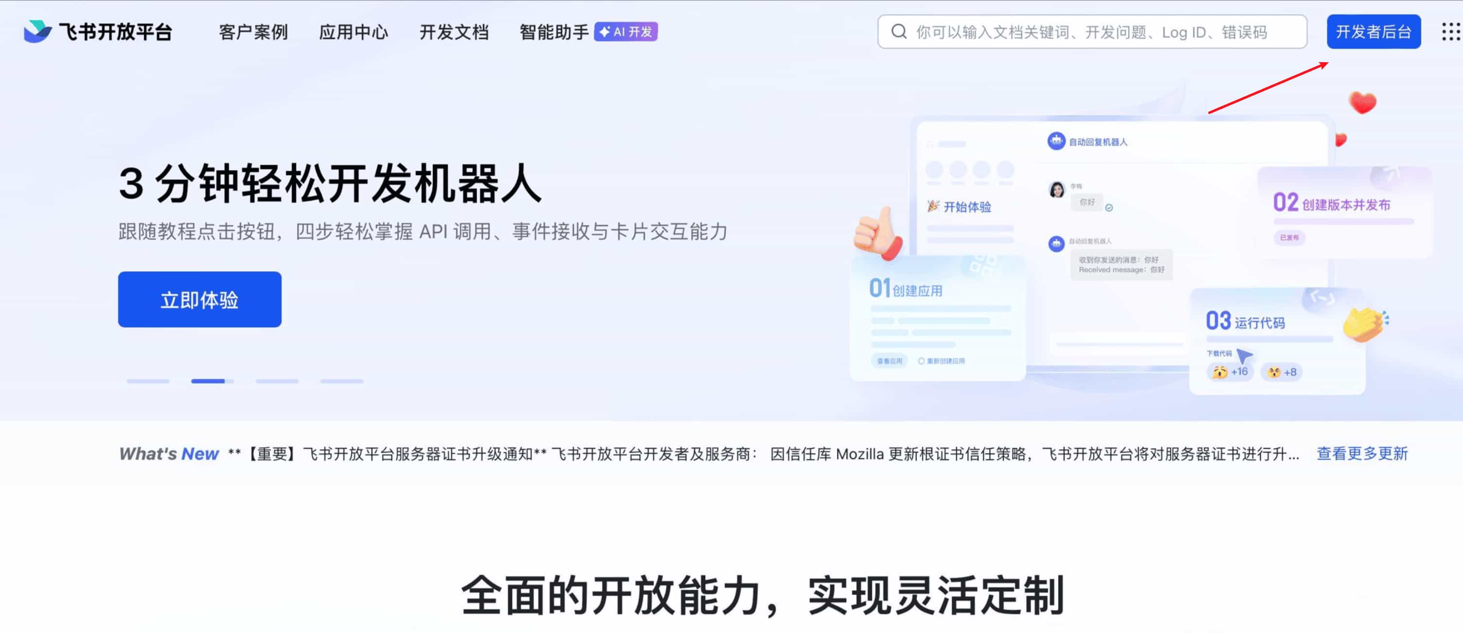 - 点击页面右上角的开发者后台