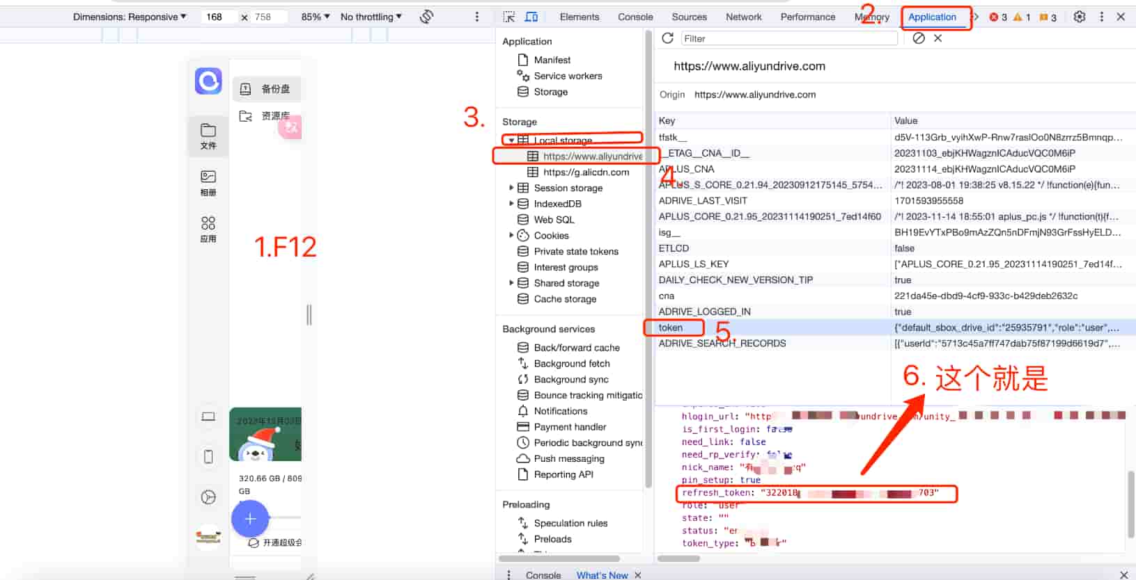 JSON.parse(localStorage.token).refresh_token- 复制输出的 token 值