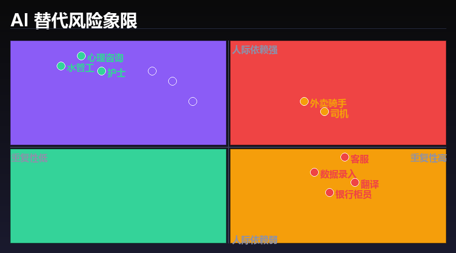 反而是水管工、理发师、心理咨询师、护士——这些看起来"不高端"的工作,AI 替代难度极大。
