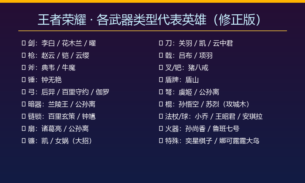 一、已登场的武器类型与代表英雄