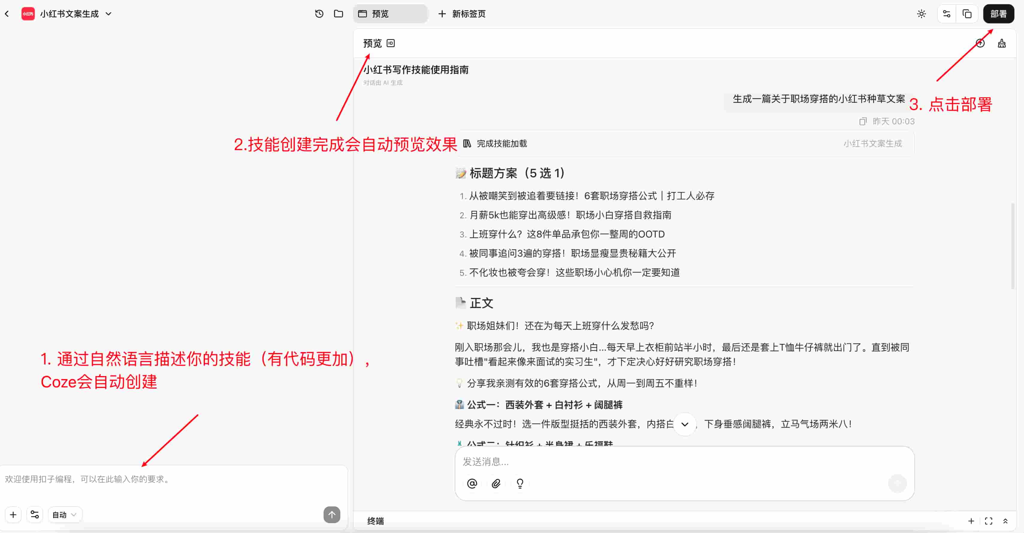 coze 技能创建:扣子 - AI办公助手一站式平台