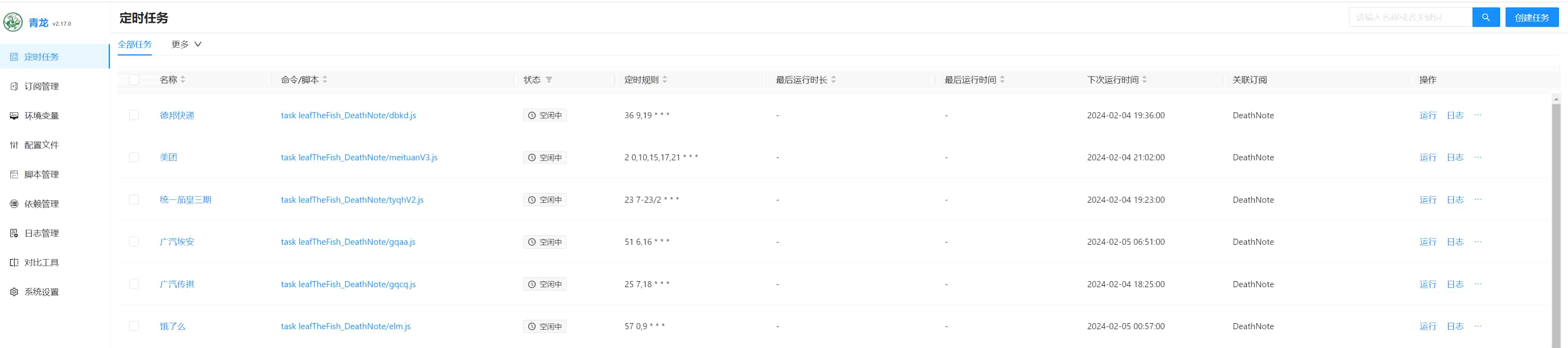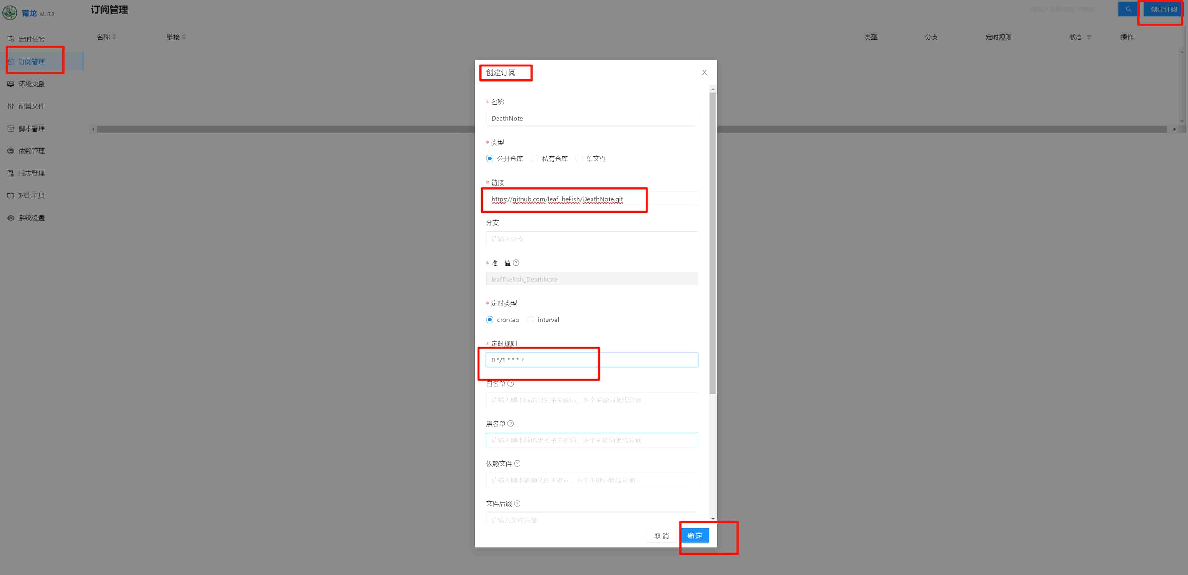订阅功能是青龙面板最实用的特性之一。通过订阅,面板会定时从指定的 GitHub 仓库拉取脚本,并自动创建对应的定时任务。
